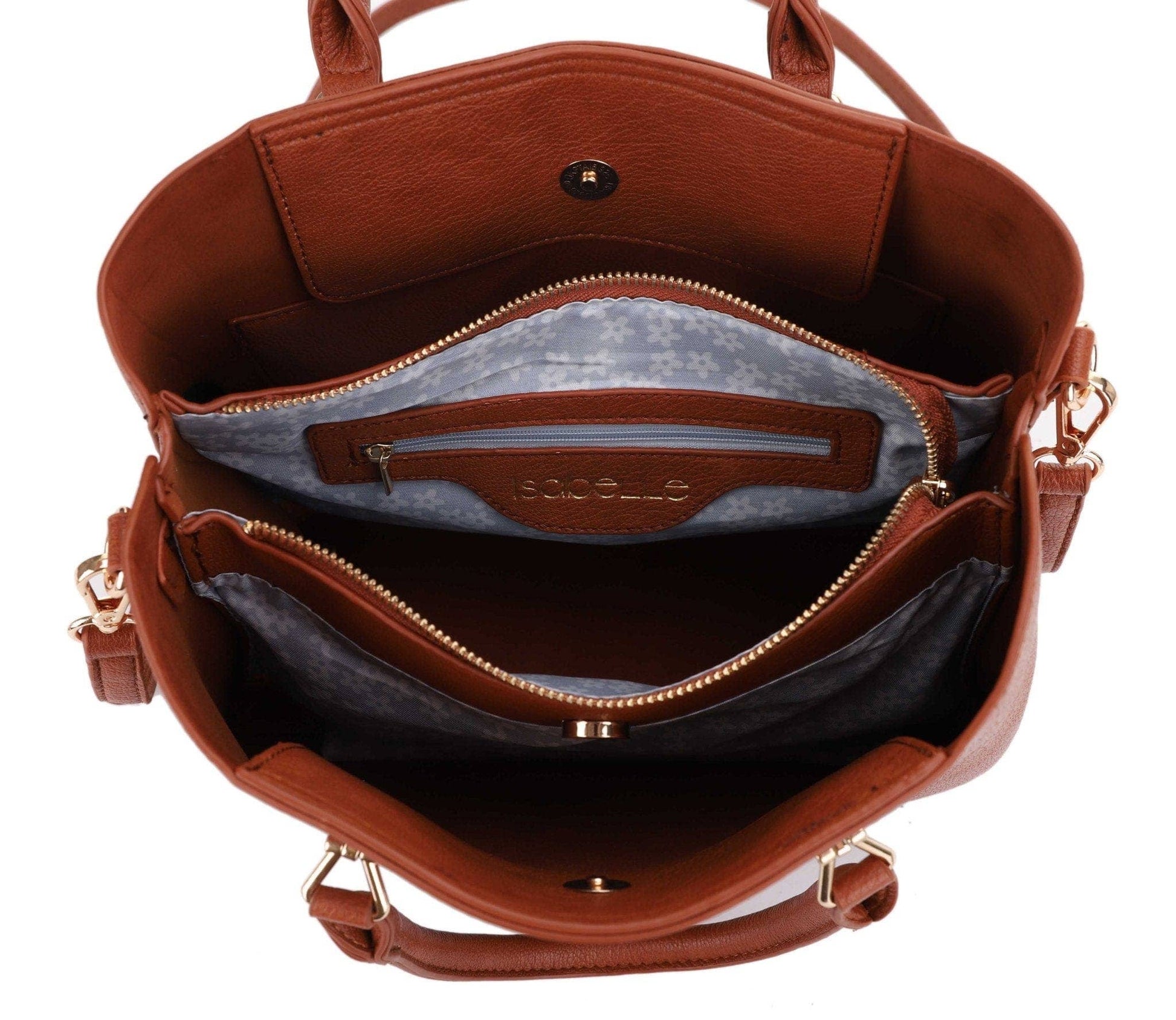 Expertly designed and crafted, the Katrine Metal Bar Accent Satchel/Crossbody Bag is a versatile accessory suitable for all occasions. Made from high-quality materials, this bag offers durability and functionality. With its stylish metal bar accent and multiple carrying options, it combines fashion and convenience seamlessly. * Detachable/adjustable strap * Back zip pocket * Magnetic button closure side compartments * Main zipper closure compartment * Inside zip pocket * Inside slip pocket * Gold hardware * 13" x 5.25" x 10.75"