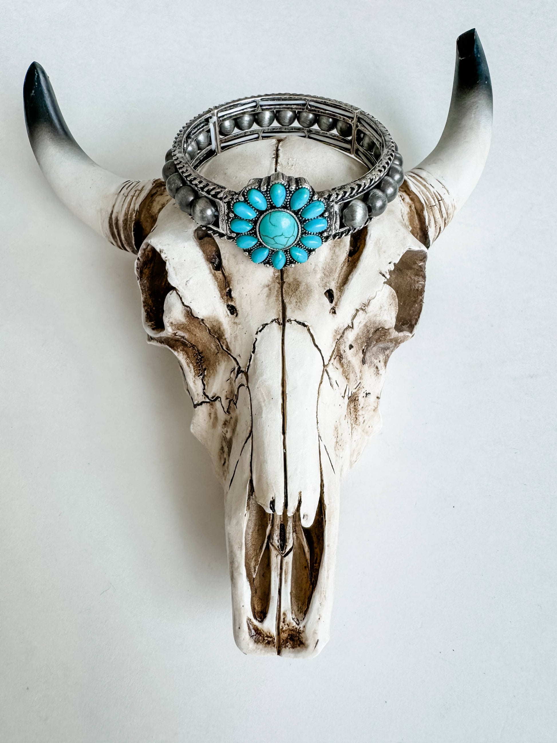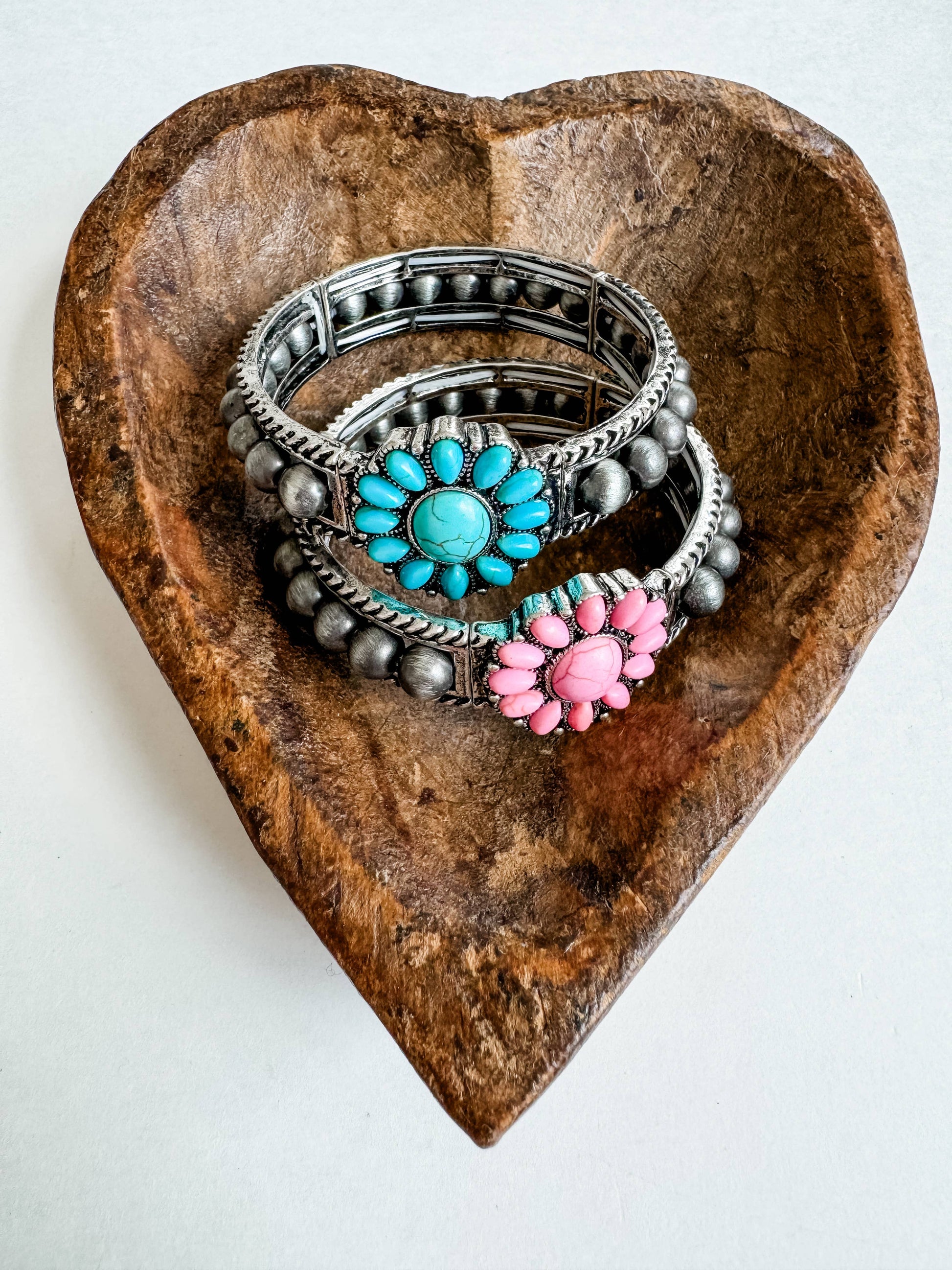 Stone Stretch Bracelet | Western Turquoise pink silver patina turquoise Stackable Bracelet Natural Stone Bracelet Bangle Stone stretch bracelet - 2.375" Diameter - Stretch band