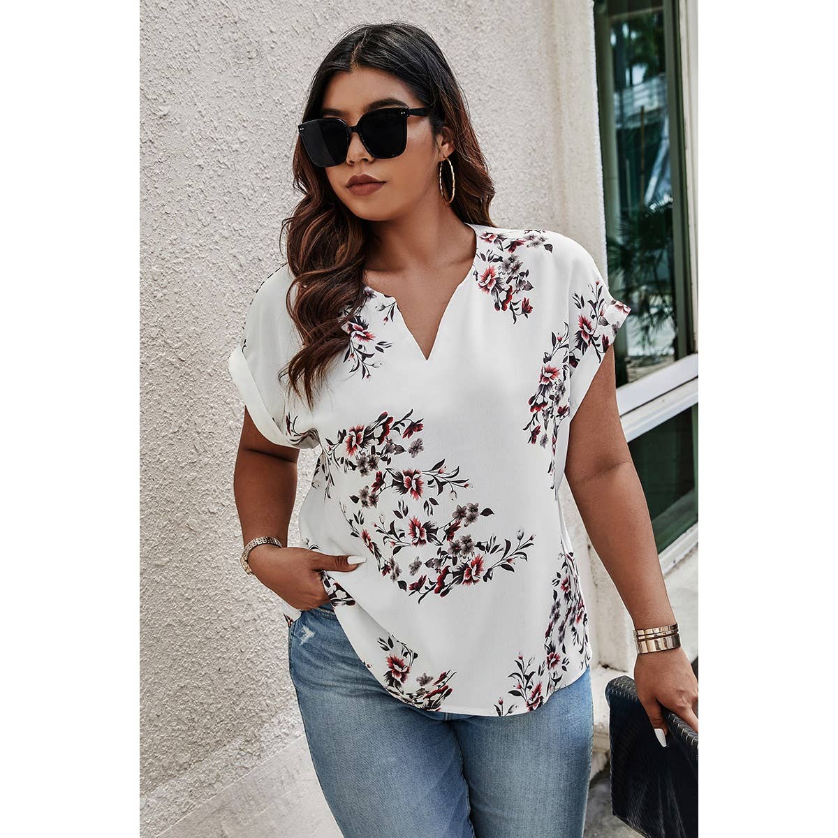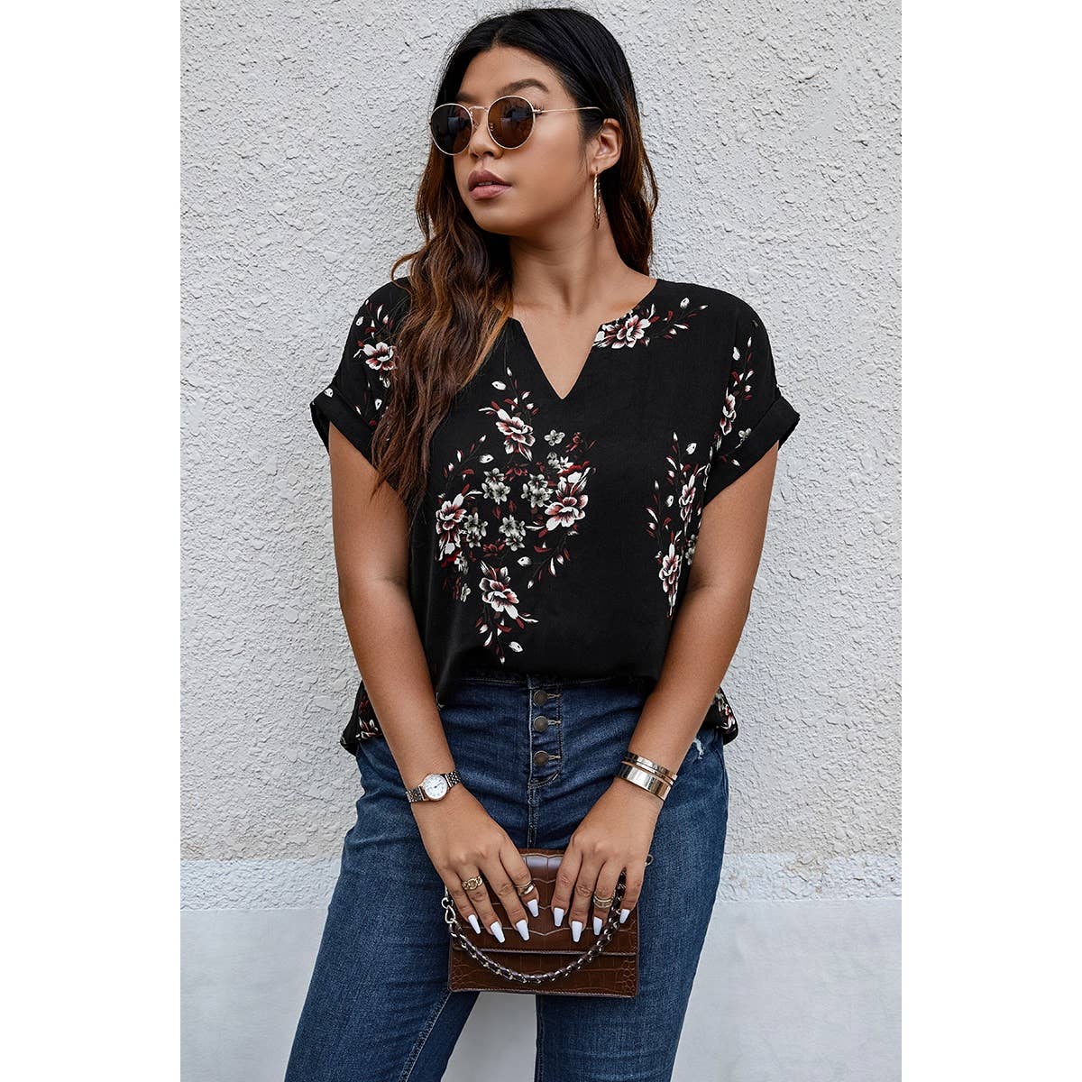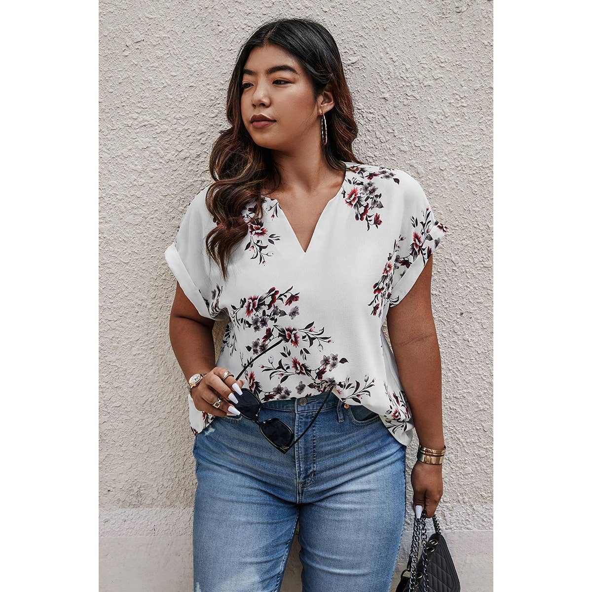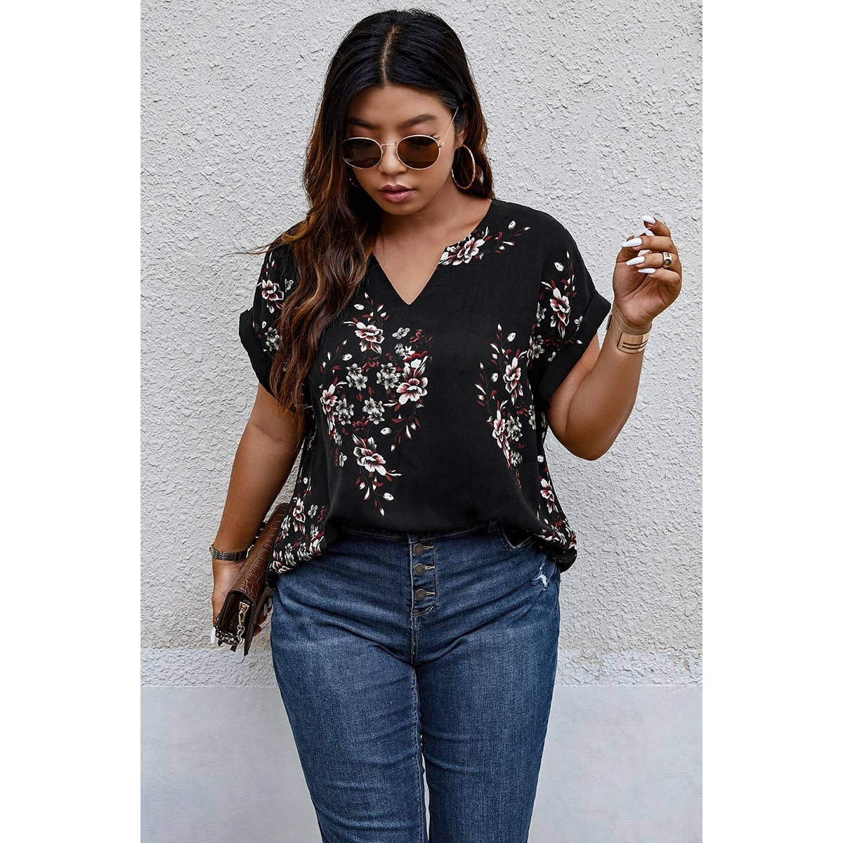 Freshen up your wardrobe with this Plus Size Floral Notched V-Neck Short Casual Blouse — the perfect blend of feminine detail and everyday ease. Designed with curves in mind, this top features a flattering notched V-neckline, short sleeves, and a breezy silhouette that drapes beautifully without clinging.