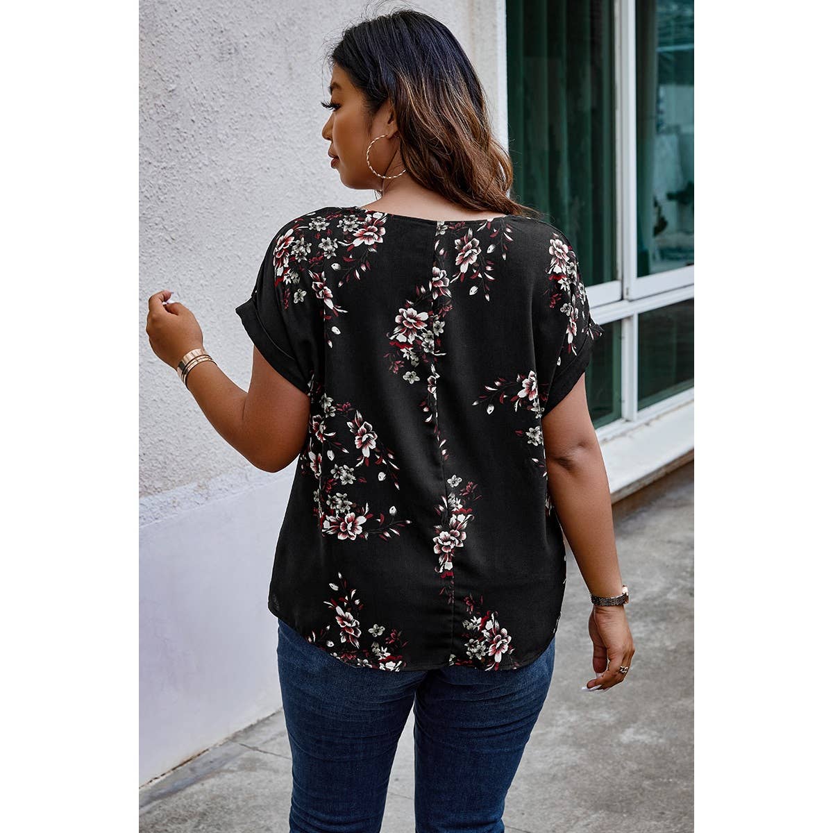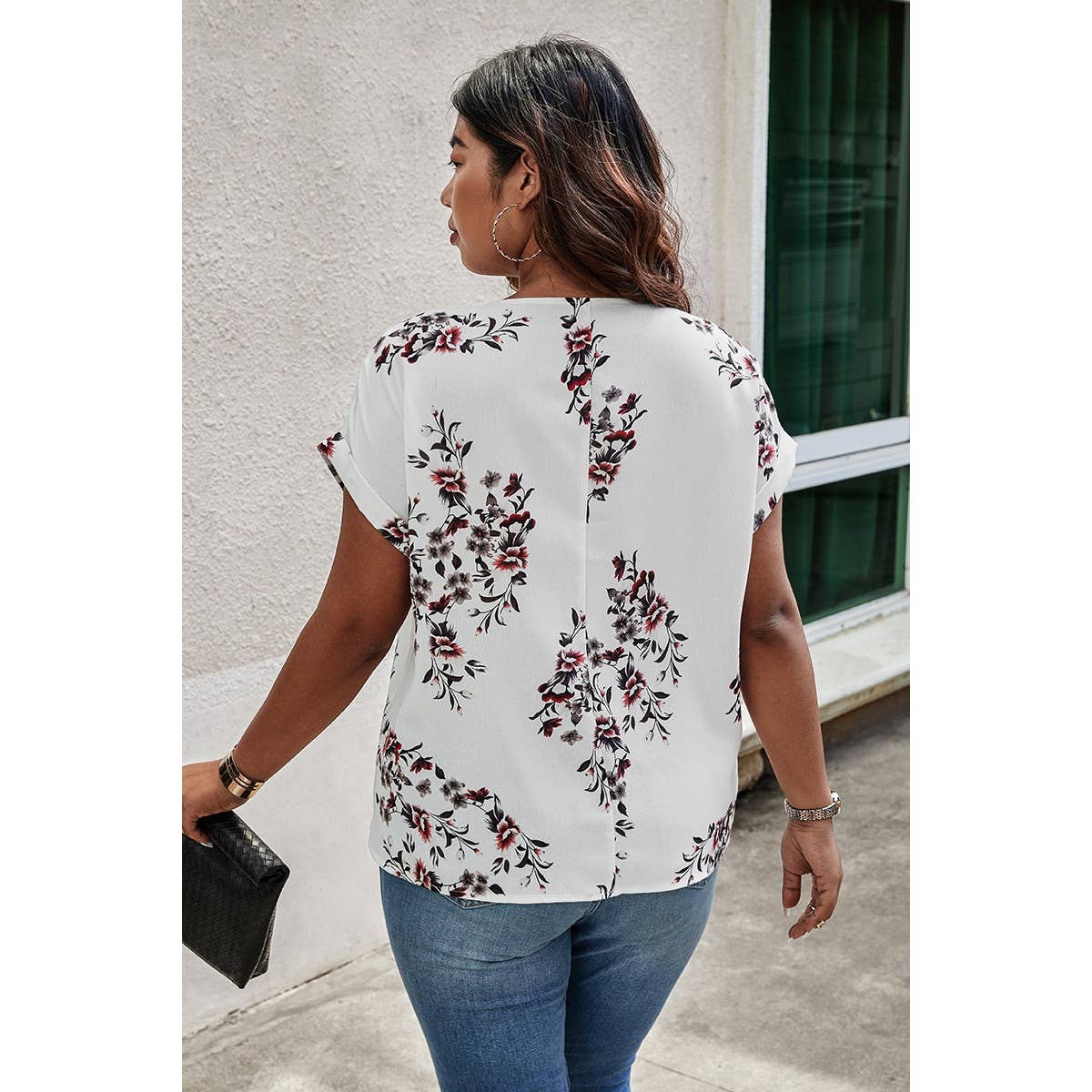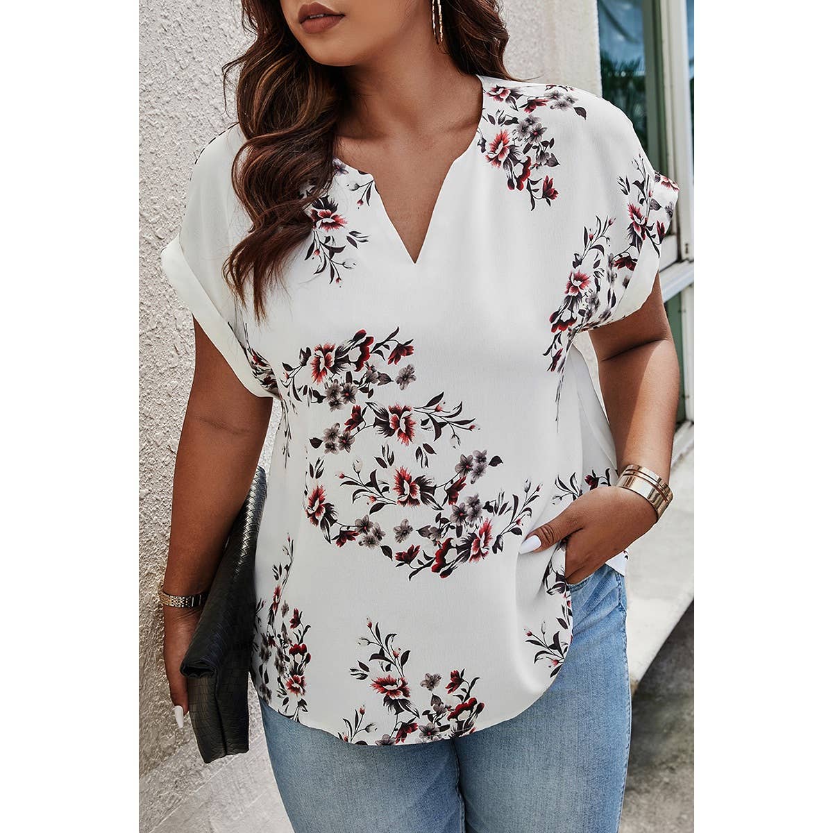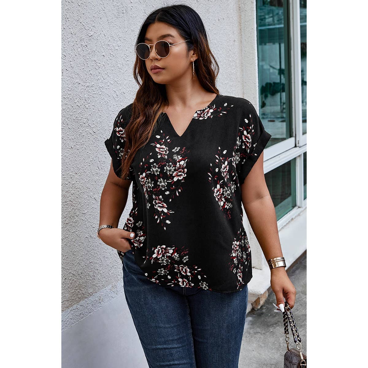 Freshen up your wardrobe with this Plus Size Floral Notched V-Neck Short Casual Blouse — the perfect blend of feminine detail and everyday ease. Designed with curves in mind, this top features a flattering notched V-neckline, short sleeves, and a breezy silhouette that drapes beautifully without clinging.