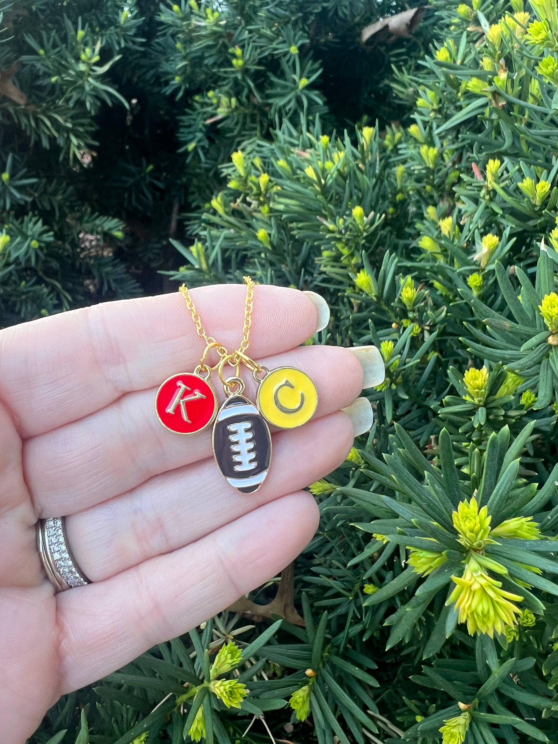 Red Yellow KC Football Charm Chiefs Kansas City Necklace
